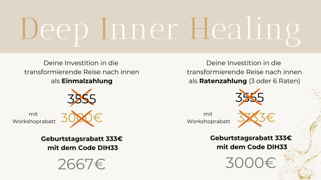 Sichere dir als Workshop TeilnehmerIn den einmaligen Workshoprabatt und NUR bei Start im September meinen Geburtstagsrabatt von 333€ oben drauf!
